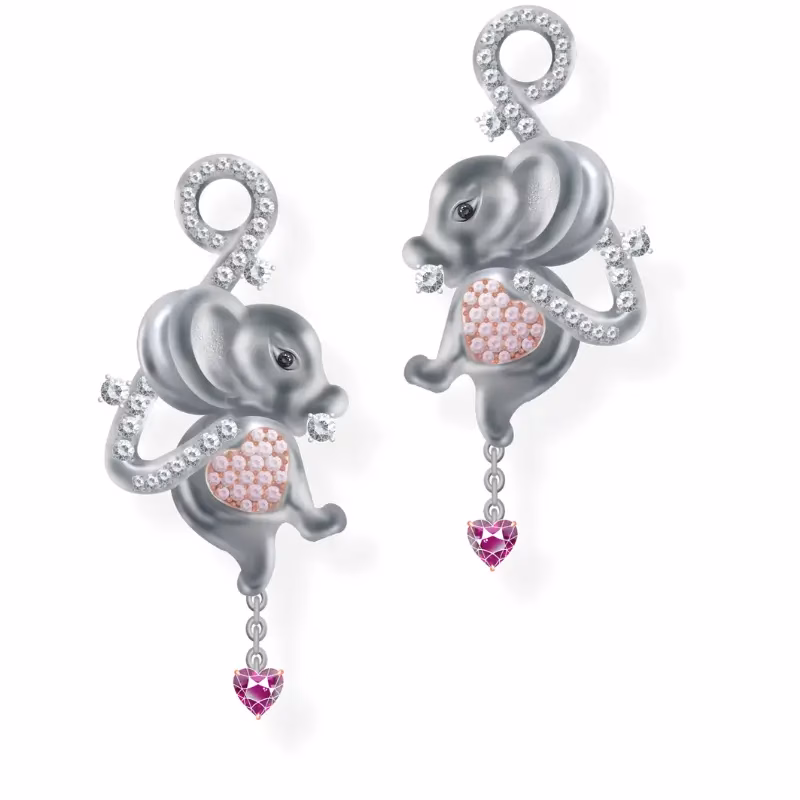 Meet Speedy Mimmy, the playful little mouse who brings joy wherever she goes. Adorned with sparkling diamonds and charming pink accents, these earrings dance merrily from detachable black diamond hoops, letting your style switch from playful to elegant in an instant.